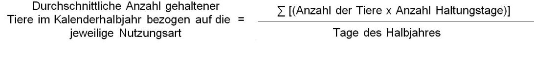 Die Berechnung der durchschnittlichen Anzahl gehaltener Tiere in einem Kalenderhalbjahr kann z. B. anhand folgender Formel erfolgen: