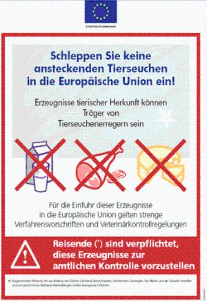 Um zu verhindern, dass durch Fleisch- oder Milcherzeugnisse Tierseuchen in die EU eingeschleppt werden, gelten seit 1. Mai 2009 folgende Vorgaben: